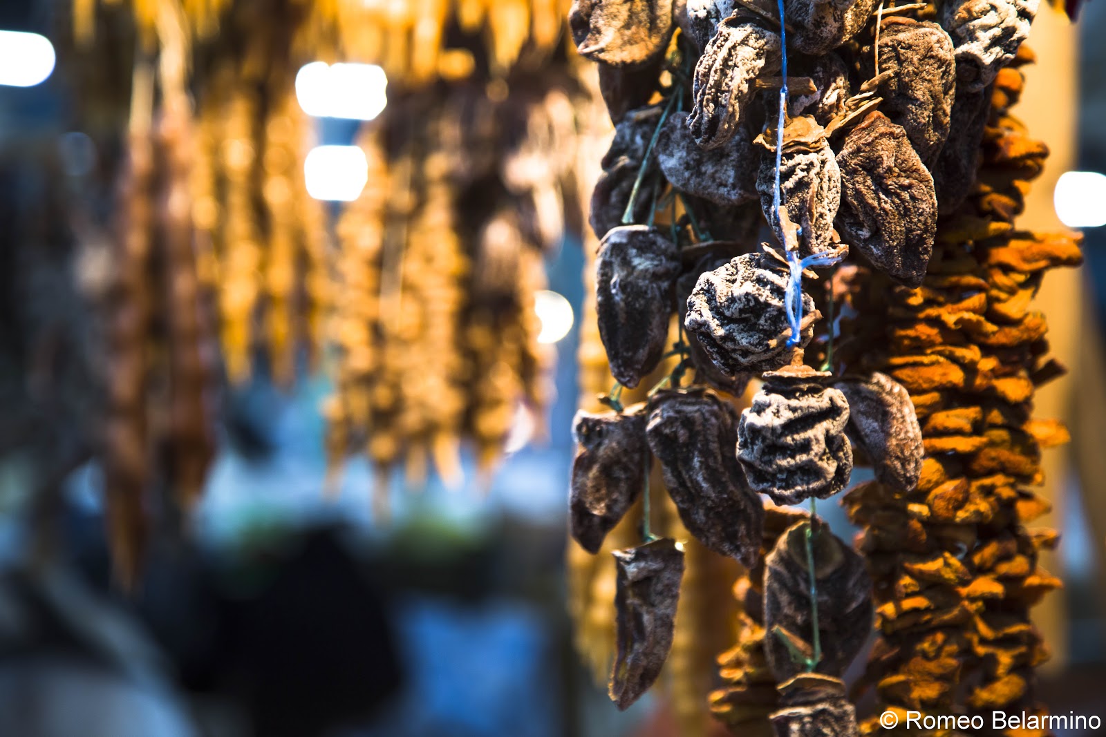 While churchkela is the most popular Georgian sweet, another Georgian sweet that evokes childhood memories in the minds of many Georgians is karaliokis chiri, dried persimmons. Hard persimmons are cleaned, peeled, strung together by the stems, and dried in the sun for a couple weeks until they are completely dried. The result is a pruney looking item that is sweet, soft, and delicious.